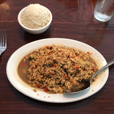 Spacious West Loop restaurant with delicious Thai food, generous portions, and excellent service, offering a wide range of spice levels and dishes.