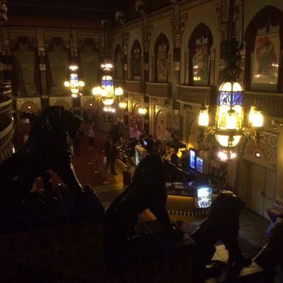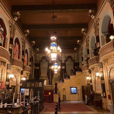 The interior captures the grandeur of a 1920s movie palace, retaining its historical charm even with the modern layout of three separate theaters. It feels like stepping into a grand landmark designed for an immersive cinematic experience.ambiance_potoo