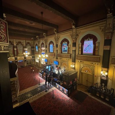 The interior captures the grandeur of a 1920s movie palace, retaining its historical charm even with the modern layout of three separate theaters. It feels like stepping into a grand landmark designed for an immersive cinematic experience.ambiance_potoo