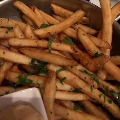 The menu features Mediterranean-inspired Italian dishes, such as the Red Pepper dish. Everything is paired thoughtfully with an extensive selection of wines to complement the flavors.food_potoo