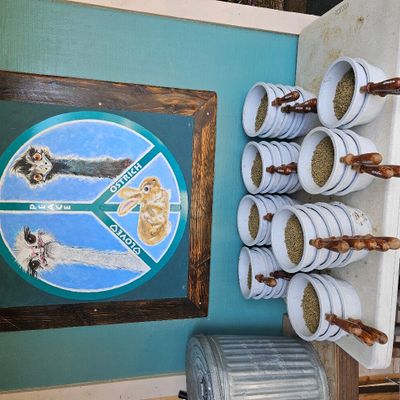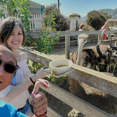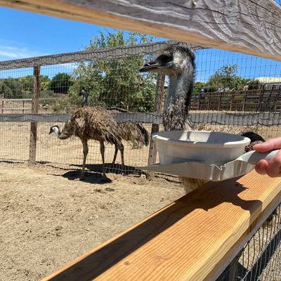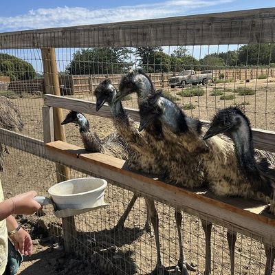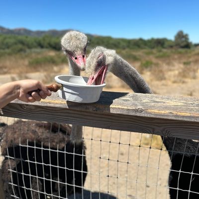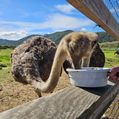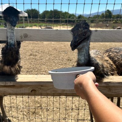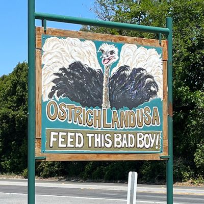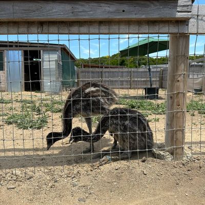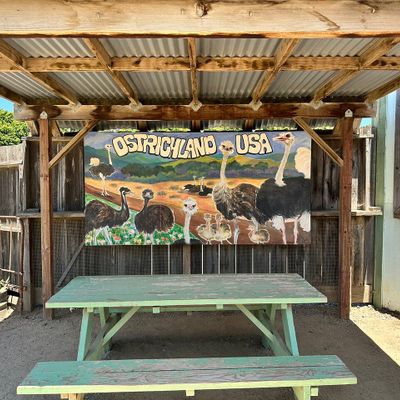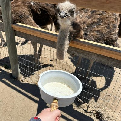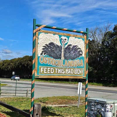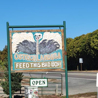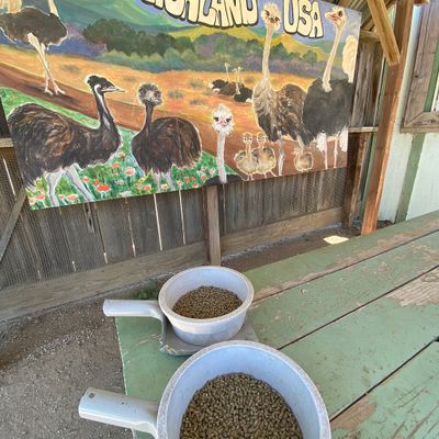 Unique roadside attraction where visitors can observe and feed ostriches and emus. The attraction features a gift shop with ostrich-related items and allows guests to purchase feed for the birds.