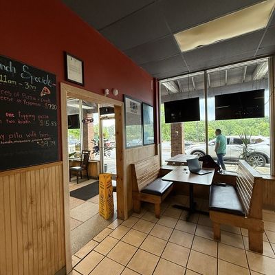 The menu features a variety of options including BBQ Chicken and Chicken Florentine pizzas. You can also enjoy Greek gyro platters, meaty chicken wings, and fresh, homemade burgers.food_potoo