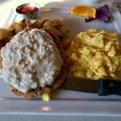 Casual American bistro with a patio, serving breakfast, brunch, lunch, and dinner, known for its burgers, omelets, and chicken fried steak in a somewhat secluded location.