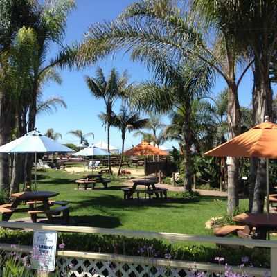 Casual American restaurant with a large beachfront outdoor patio offering burgers, seafood, and other American fare, known for its family-friendly atmosphere and spacious setting.