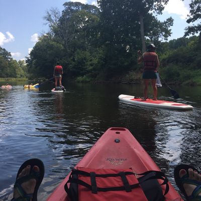 Paddle Creek offers kayak and paddleboard rentals for excursions on local waterways. They provide a convenient and helpful service for individuals and groups looking to enjoy a relaxing day on the water.