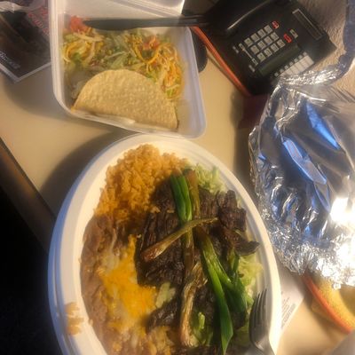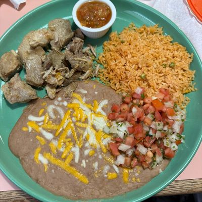 The menu features flavorful carnitas and a combo plate with enchilada and chili relleno. You can also enjoy savory ground beef dishes, flavorful salsa, and a tasty refried bean dip served with chips.food_potoo