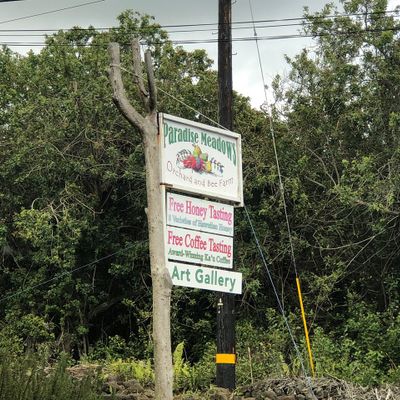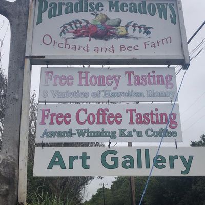 Charming farm offering a delightful experience with free samples of local products like honey, coffee, and uniquely dehydrated macadamia nuts. Visitors can explore the grounds, observe farm animals, and browse artwork in the gift shop.