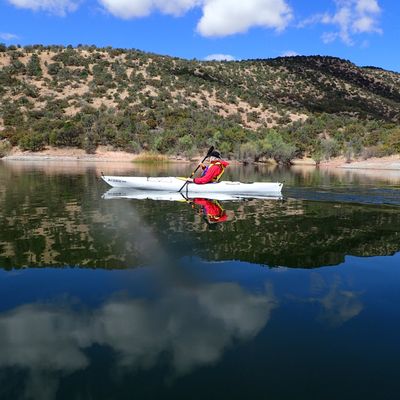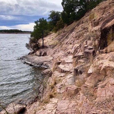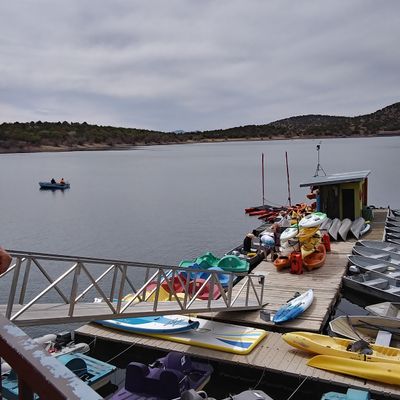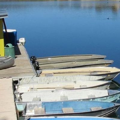 Scenic mountain lake offering a variety of recreational activities. Visitors can enjoy fishing, boating with rentals available, and hiking on a trail that encircles the lake.