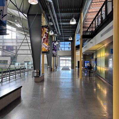 Versatile indoor recreation facility offering a wide range of athletic and activity spaces. It features courts for basketball and roller hockey, artificial turf fields for soccer, an ice hockey rink, batting cages, and a climbing wall. long_description