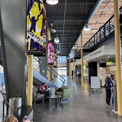 Visitors frequently highlight the fitness loft and the indoor walk/run track as standout features. The facility is also noted for its family-friendly amenities, including the climbing wall and various sports courts for basketball, soccer, and hockey.reviews_potoo