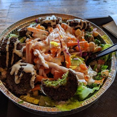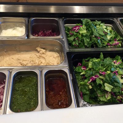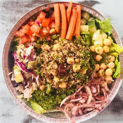 This Mediterranean fast-casual spot offers customizable takeaway bowls of salad, starting with a protein and adding from a wide selection of vegetables.