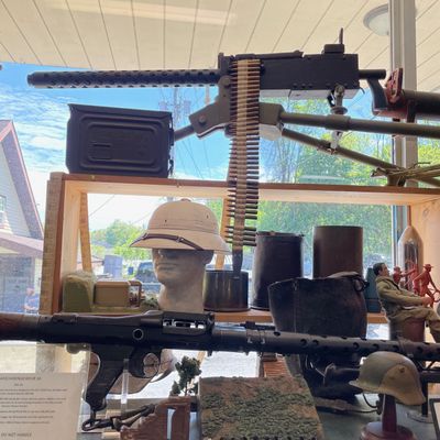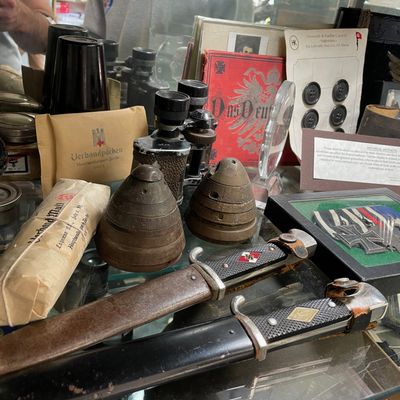 Unique establishment blending military artifacts, collectibles, and surplus items. It features an eclectic collection ranging from medals and weapons to toy soldier displays and historical books.