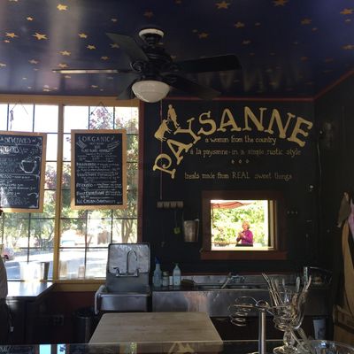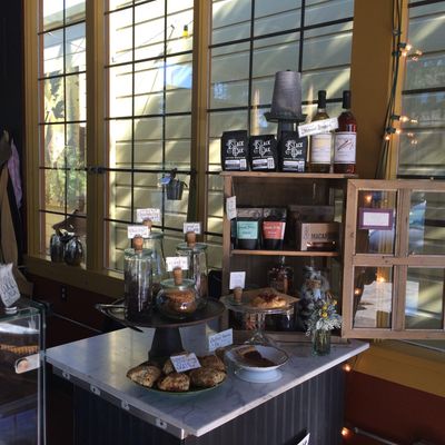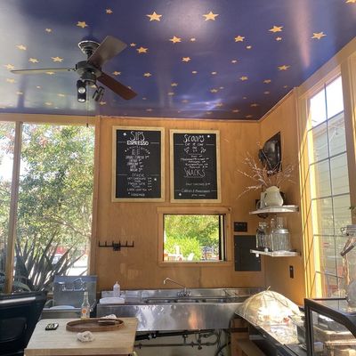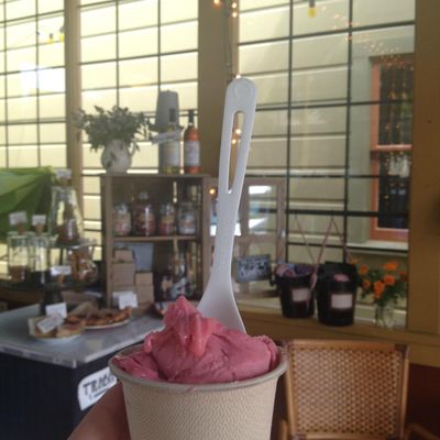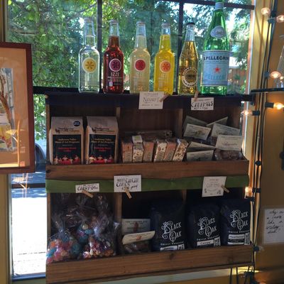 Charming, small ice cream shop with coffee and sweets, offering organic ice cream and other treats in a picturesque setting.