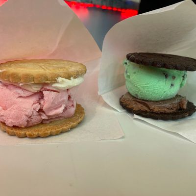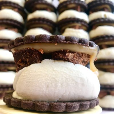 Chain offering gourmet ice cream sandwiches with pie fillings in a charming downtown location, featuring many unique flavor combinations.