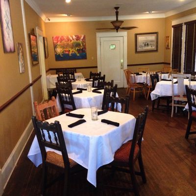 Small, upscale American restaurant with a refined menu and attentive service, offering both bar seating and private rooms in a renovated building.