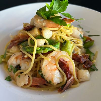 Casual fine-dining Italian restaurant in a historic location, offering seafood, pizza, and pasta in a romantic setting with attentive service.