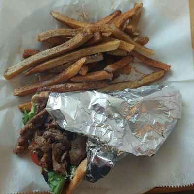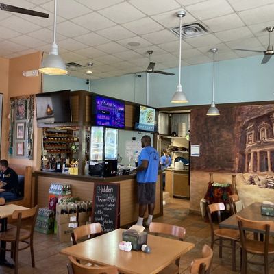 Welcoming Mediterranean restaurant with Greek and Middle Eastern specialties, offering both indoor and outdoor seating, a full bar, and a small grocery section.
