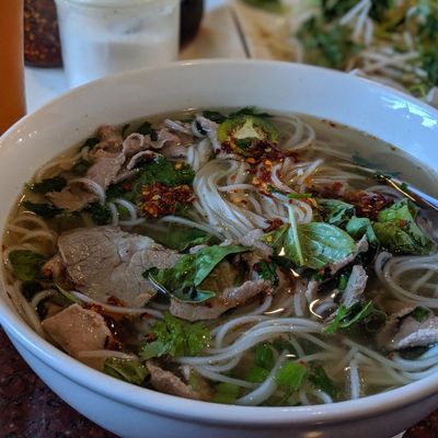 Casual Vietnamese restaurant with generous portions, known for its flavorful pho and other noodle dishes, alongside grilled entrees; service can be inconsistent.