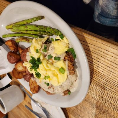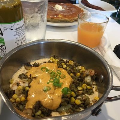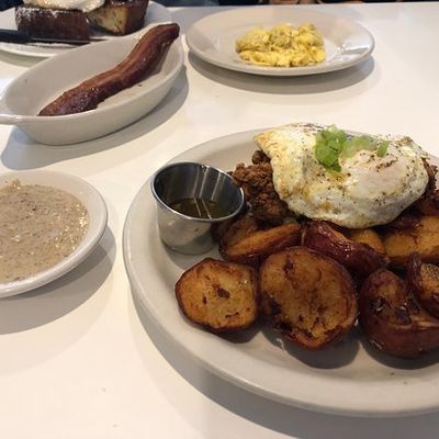 Reviewers love the creative menu, specifically highlighting the brisket benedict and chorizo scrambled eggs. The service is frequently described as on point and the coffee is a standout favorite.reviews_potoo