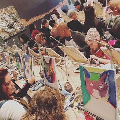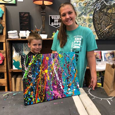 Pipe and Palette Home Outfitters & Mixed Media Art Classes offers a variety of creative experiences, including splatter painting, pottery painting, and hat design parties. It provides a fun and engaging environment for individuals, couples, and families to explore their artistic side with helpful and talented instructors.