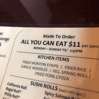 The menu features a wide variety of fresh sushi, including an all-you-can-eat option. Everything is prepared with a focus on freshness and high-quality ingredients.food_potoo