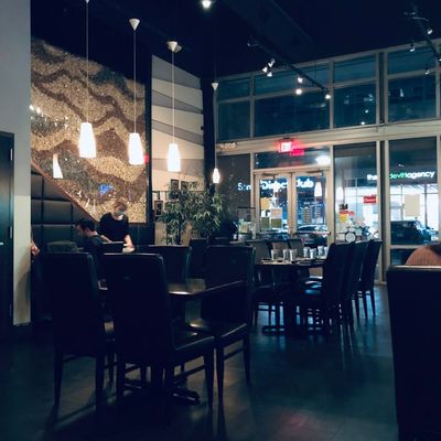 The atmosphere is friendly and comfortable, offering a relaxed setting for dining. The space maintains a 'good vibes only' energy that carries from the takeout window into the lounge area.ambiance_potoo