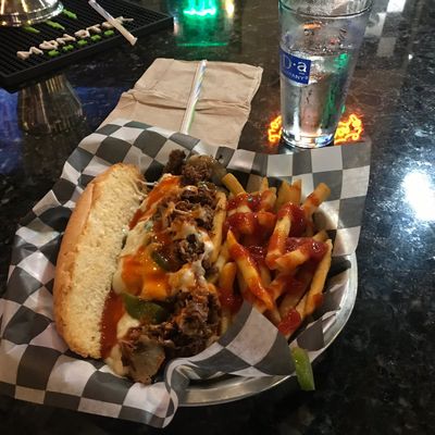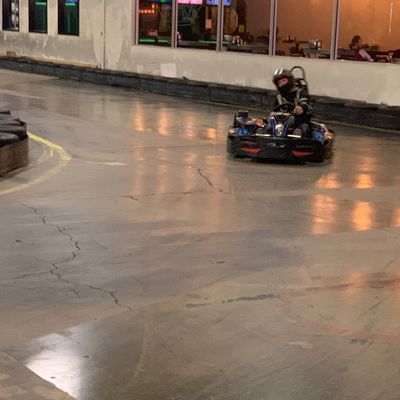 Casual, race-themed grill restaurant with go-karts, offering American bar food and craft cocktails, known for its unique atmosphere and delicious sandwiches.