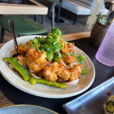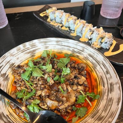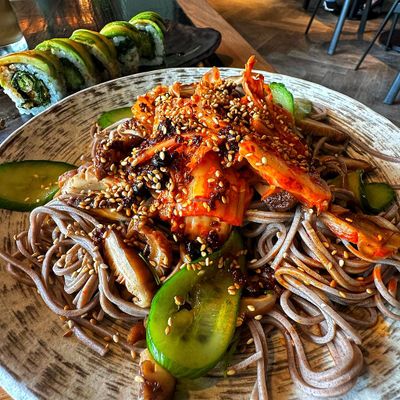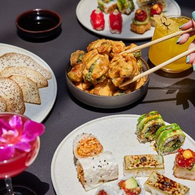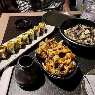 High-energy, plant-based Asian fusion restaurant with a stylish design, offering sushi, innovative dishes, and creative cocktails.