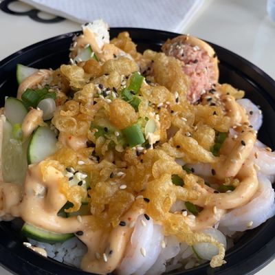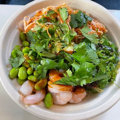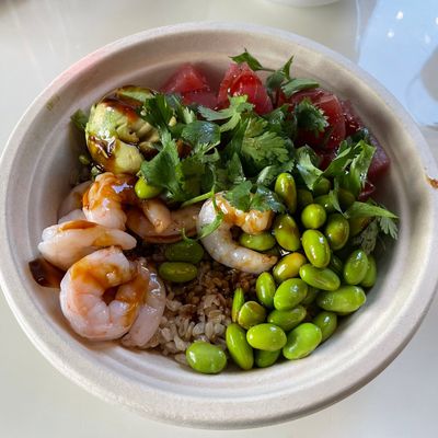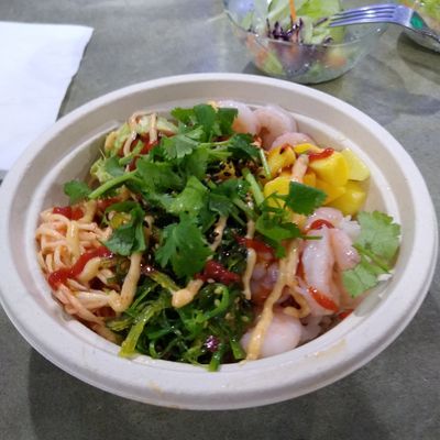 Small, stylish upstairs restaurant offering customizable poke bowls with fresh seafood and sushi-grade fish in a neighborhood with limited parking.