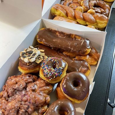 Small, family-owned shop offering unique, croissant-like donuts and fritters with a variety of toppings, known for its generous portions and friendly service.