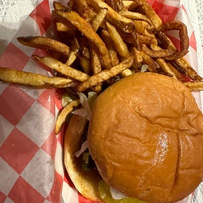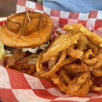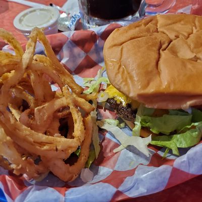 Classic burger joint with a 50s diner vibe, serving made-to-order burgers, fries, and onion rings in a casual setting.