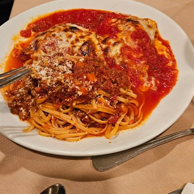 BYOB Italian restaurant in a strip mall, offering a large menu of classic Italian dishes and a generally positive dining experience.