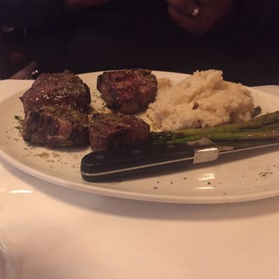 Steakhouse with a trendy vibe, offering American cuisine and seafood, plus some other options; reservations recommended.