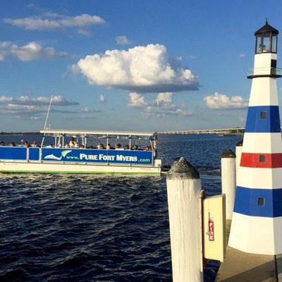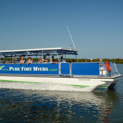 Pure Florida Fort Myers offers a variety of narrated boat tours, including dolphin watching, sunset cruises, and eco-tours. They also provide deep-sea fishing charters and unique pet-friendly excursions.