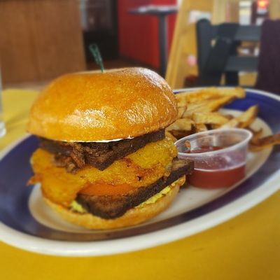 Takeout-focused vegan restaurant with delicious Jamaican-inspired and American comfort food, known for its flavorful burgers and sandwiches, in a casual setting.