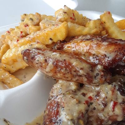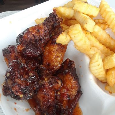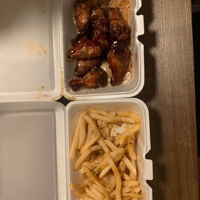 Small, casual eatery known for its excellent, flavorful wings and fries, offering various sauces and a takeout-focused atmosphere.