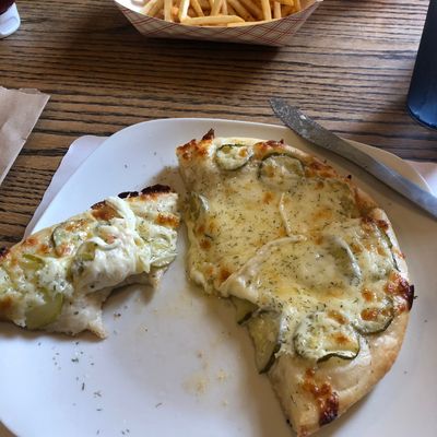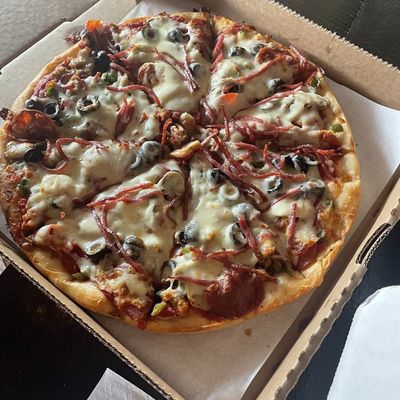 Locally-owned restaurant offering diverse pizzas, including unique specialty pies, alongside salads and sandwiches in a cozy setting. long_description