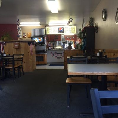 Small, family-friendly American diner with a drive-thru, known for its burgers, fries, and especially its huckleberry shakes and ice cream.