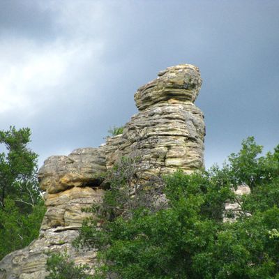 Stop for those interested in geological formations. A small trail encircles the unique rock, a remnant of Wisconsin's former sandstone bedrock.