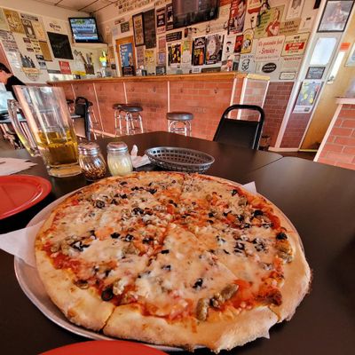 Cozy neighborhood pizza and wings spot with a bar atmosphere, offering a variety of pizzas, including unique options like pastrami, and well-regarded wings.