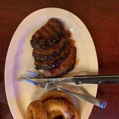 Casual barbecue restaurant offering tri-tip, pulled pork, and ribs, with some unusual menu additions like burgers and pizzas; outdoor seating is available.