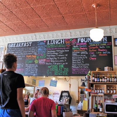 Historic roadside cafe with an old-fashioned soda fountain, serving American comfort food like burgers and shakes, plus unique desserts in a charming, vintage atmosphere.
