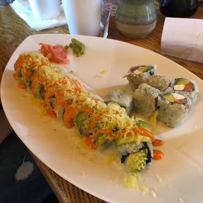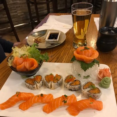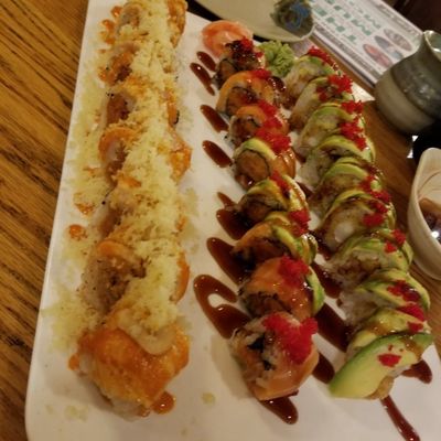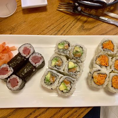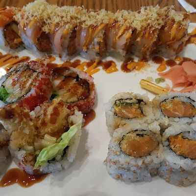 Popular sushi bar and grill offering a diverse Asian menu, including sushi, sashimi, and teriyaki, with unique seating options and consistently fresh fish.