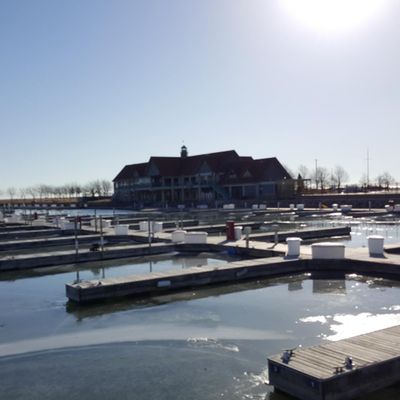 Scenic waterfront destination offering views of Lake Michigan and numerous boats. It features a clean facility with various amenities, including a store, ice cream, and a private pool area for slip owners.