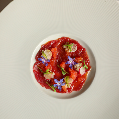 Experience a meticulously crafted multi-course menu, featuring sophisticated tasting options. The dishes are prepared with precision to highlight high-end American flavors.food_potoo