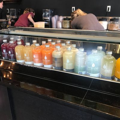 Healthy eatery offering organic juices, smoothies, bowls, and toasts in a relaxed setting.