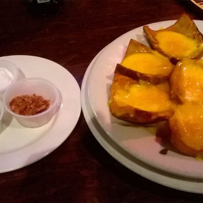 Traditional British pub offering a wide beer selection and pub fare like bangers and mash, burgers, and potato skins; service and food quality are inconsistent.