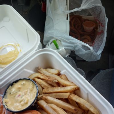 The menu features a wide selection of burgers, including a standout pastrami burger. You can also enjoy steak fries and queso fries that are thoroughly covered in rich, creamy queso.food_potoo