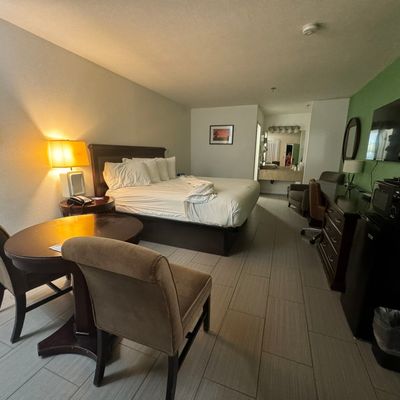 Well-maintained motel offering clean and spacious rooms with comfortable beds. It provides convenient amenities like microwaves and refrigerators, and features a pool area.