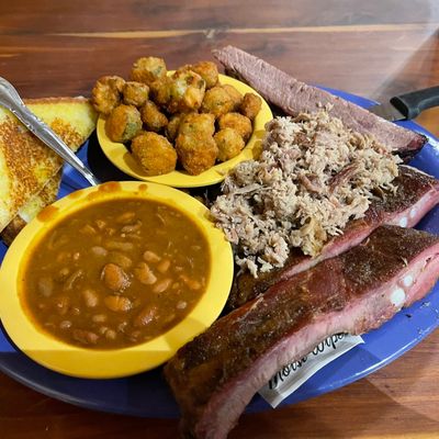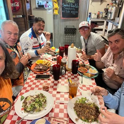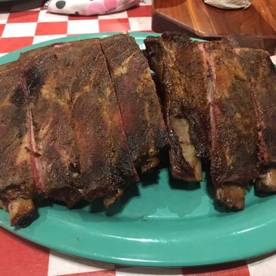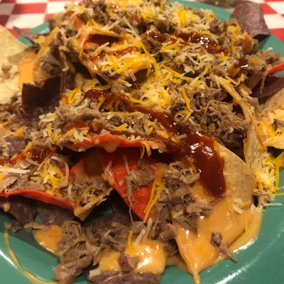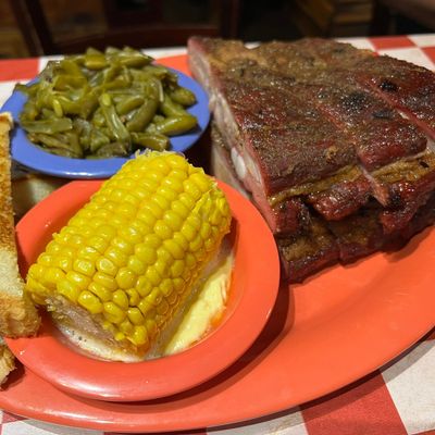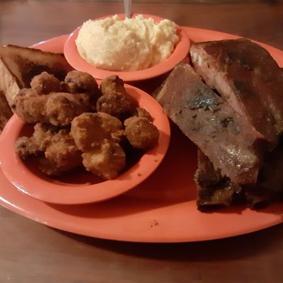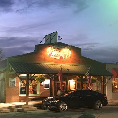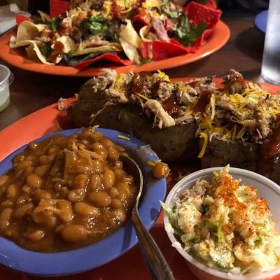 Casual American barbecue restaurant with a pleasant atmosphere, offering generous portions of smoked meats and creative sides, located just off the interstate.